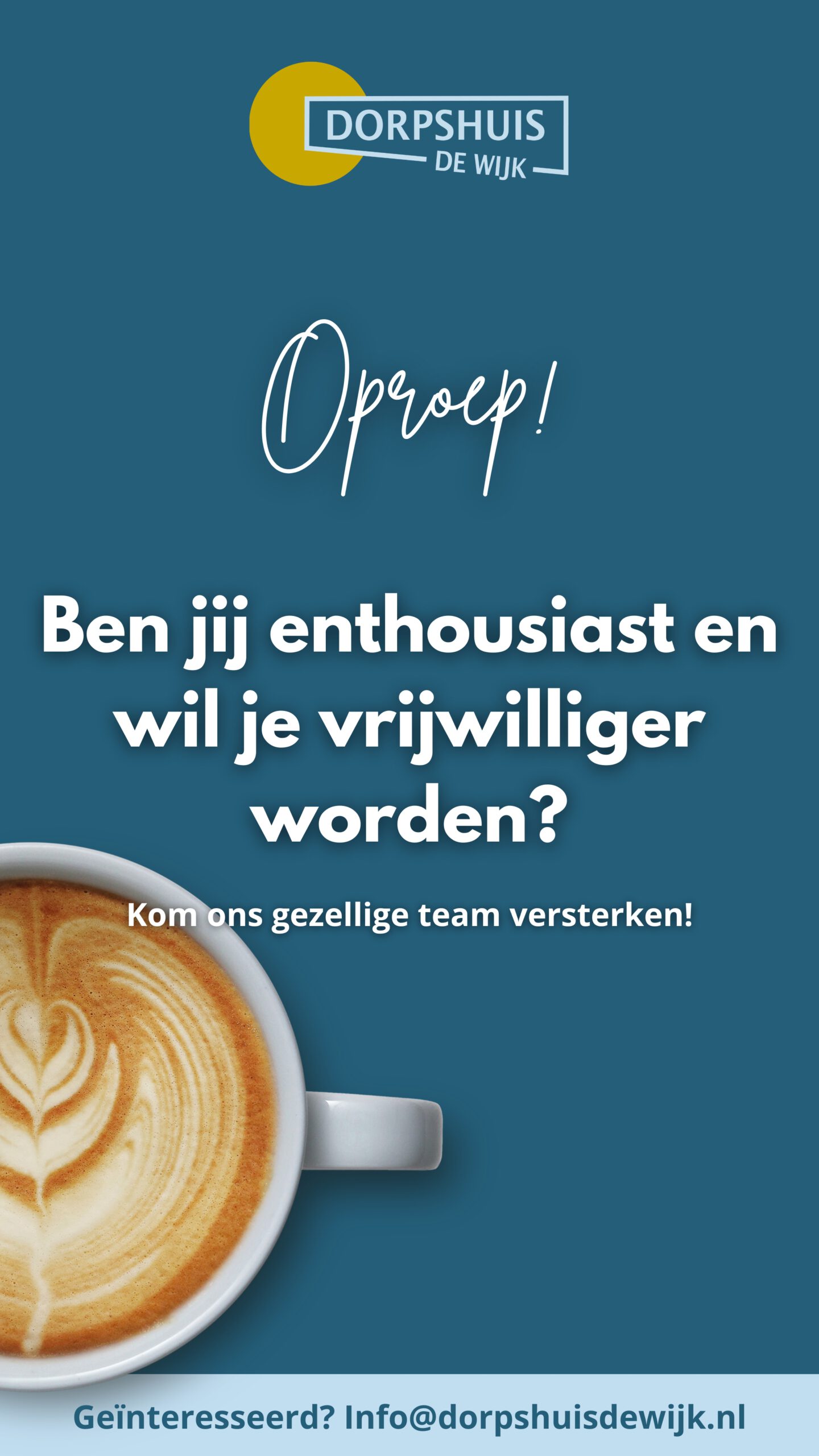 Wil je vrijwilliger worden in het dorpshuis. Heel graag en heel welkom. bel 0522444200 of mail info@dorpshuisdewijk.nl