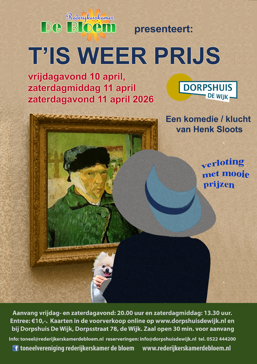 Op 10 en 11 april 2026 presenteert Rederijkerskamer de Bloem uit de Wijk weer hun jaarlijks toneelstuk. Dit keer:
