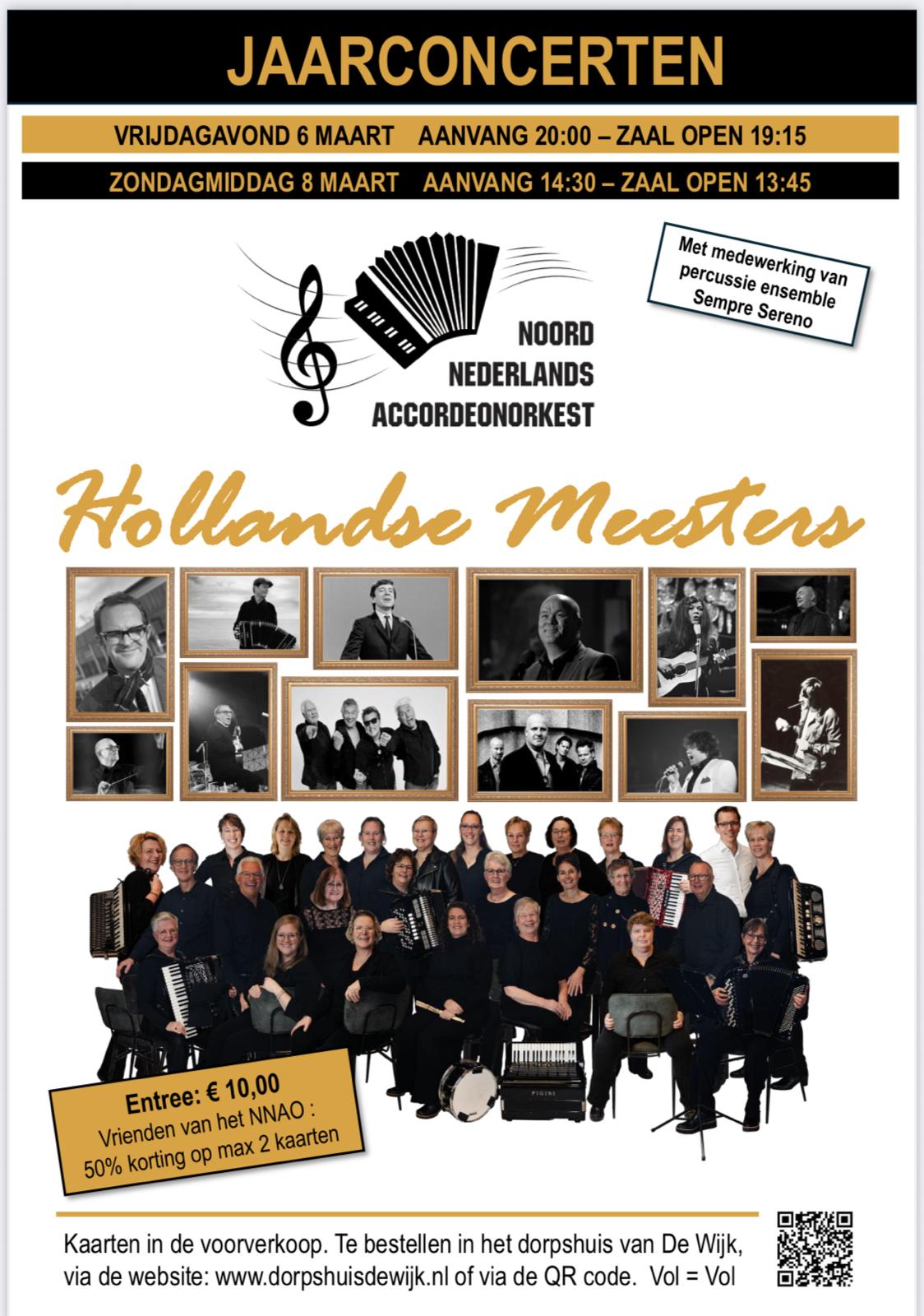 Grote zaalVrijdag 6 maart en zondag 8 MAART 2026 - Noord Nederlands accordeonorkest in het dorpshuis! Tijdens onze jaarconcerten spelen we muziek van de beste componisten, dirigenten en uitvoerende artiesten van eigen bodem. Van vertrouwd tot verrassend: muziek van onze eigen Hollandse Meesters. Vrijdagavond zaal open vanaf 19.15 uur en aanvang concert 20.00 uur. Zondagmiddag zaal…