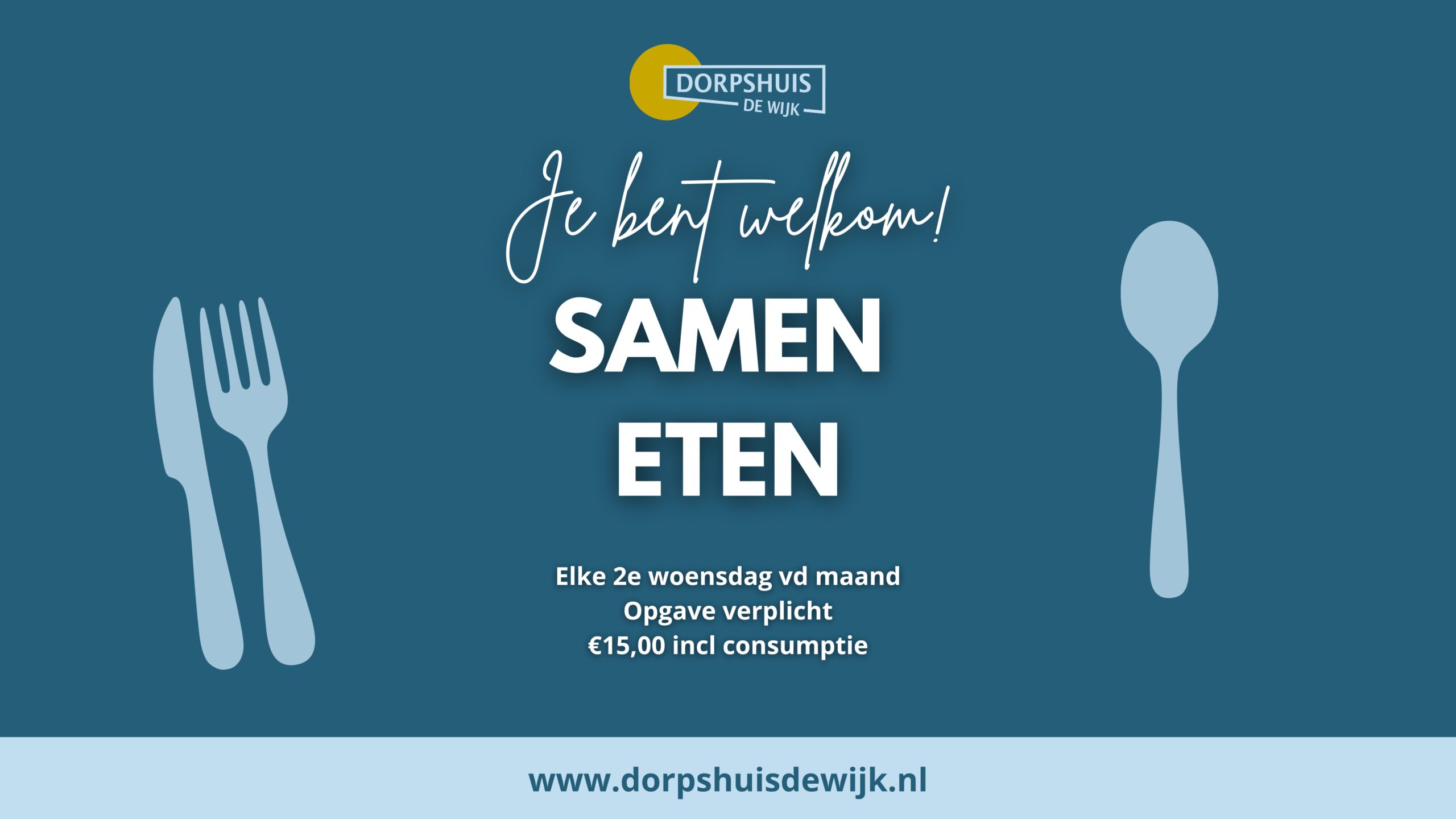 WIJ bieden een diner aan voor alle inwoners van de Wijk. Iedereen die het leuk vindt om samen te eten is welkom.