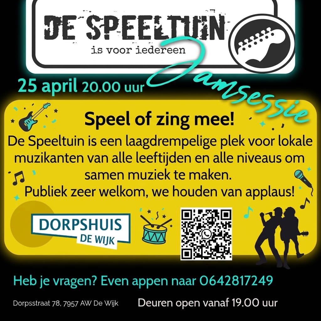 De Speeltuin Jamsessies is bij Dorpshuis De Wijk.